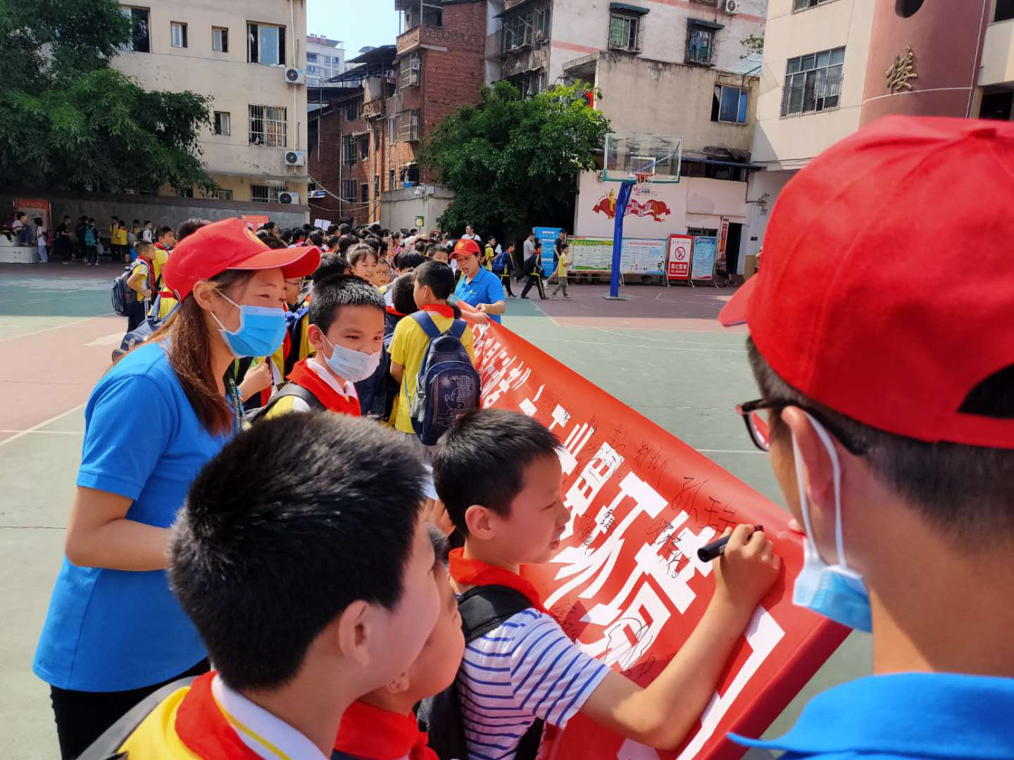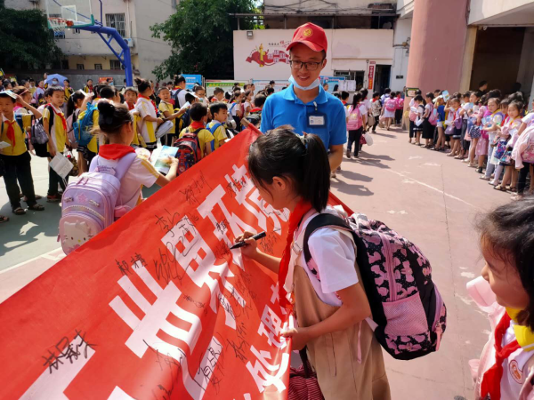 活動中,志愿者們首先采取集中宣講和你問我答的方式向廣大師生廣泛普及環(huán)保知識;呼吁廣大師生積極參與到環(huán)境保護(hù),堅(jiān)持從自己做起、從身邊做起,節(jié)約每一滴水、每一度電、每一張紙,進(jìn)一步調(diào)動了全體學(xué)生爭做“環(huán)保小衛(wèi)士”的熱情。同時(shí),也希望用師生們的實(shí)際行動影響和帶動各自家庭的每一個(gè)人,讓更多的人共同參與到生態(tài)環(huán)境保護(hù)工作中來,爭做環(huán)境保護(hù)的宣傳員和行動者,實(shí)現(xiàn)人人關(guān)心環(huán)保、人人參與環(huán)保的良好氛圍。其次,志愿者們積極開展了“美麗中國、我是行動者”簽名承諾活動,全校師生更是踴躍參加,并主動宣誓承諾,一定做一名合格的“環(huán)保小衛(wèi)士”。